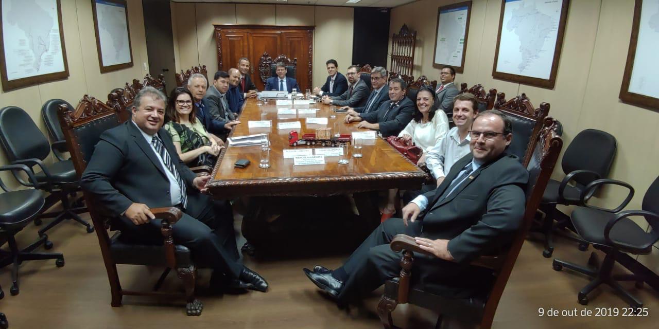 Uma comitiva capixaba, composta pelo presidente do Sindicato das Empresas de Transporte de Cargas & Logística do Espírito Santo – Trancares, Marcos Furtunato, pelo superintendente Mario Natali e pelo assessor jurídico do sindicato, Marcos Alexandre Alves Dias, além do empresário Hudson Carvalho Cordeiro, foi recebida pelo ministro da Infraestrutura, Tarcísio Gomes de Freitas, em seu gabinete, no Distrito Federal, para uma audiência cuja pauta tinha como pontos prioritários obras de arte adequadas para a BR 262; ajuste na praça de pedágio da BR 116, a Rio-Teresópolis; conclusão das obras do Arco Metropolitano, no Rio; e nova forma de pesagem de caminhões. O encontro reuniu, ainda, o diretor do Denatran, Jerry Adriane Dias Rodrigues, Bira Nobre, representante dos caminhoneiros autônomos, e uma delegação ligada ao segmento de rochas ornamentais.