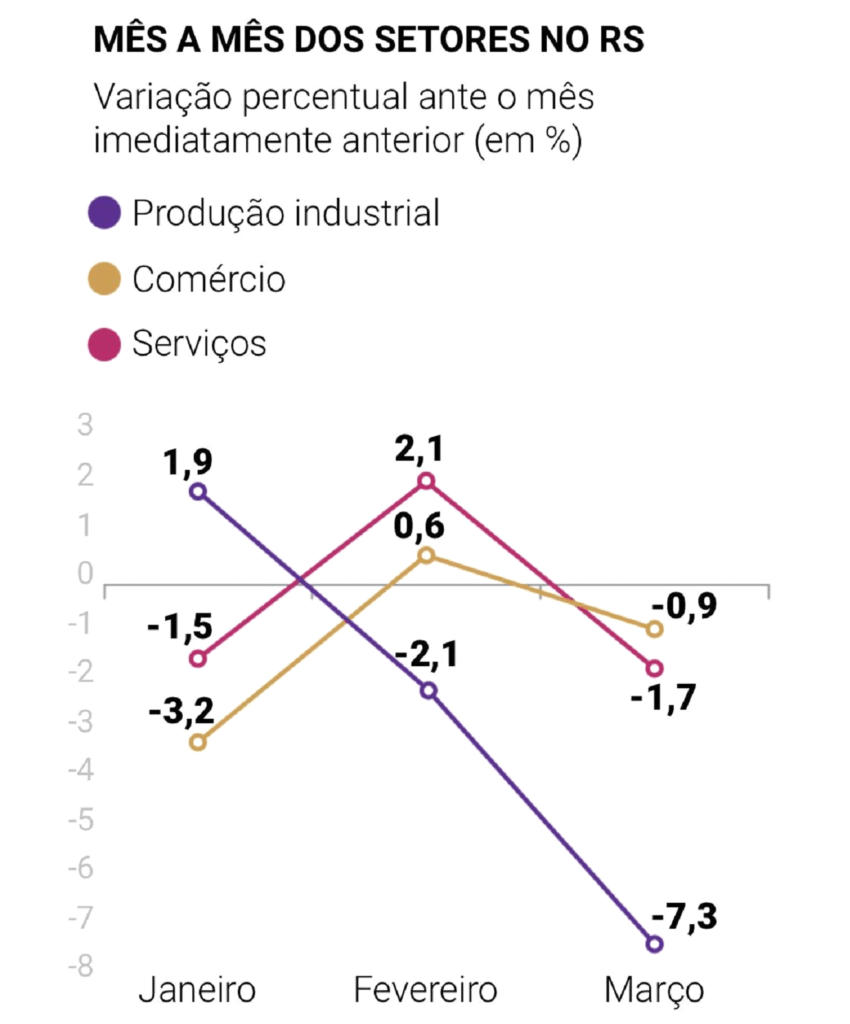 Na indústria, o economista-chefe da Fiergs estima estabilidade na produção, com algumas oscilações no volume mês a mês, mas com acumulado positivo no ano. Nunes destaca a recuperação de alguns setores no âmbito da exportação em razão do câmbio elevado, como o de couro e calçados, celulose e papel e produtos químicos, o que torna o ambiente mais atrativo.