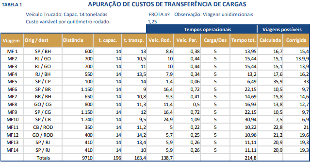 Trataremos, neste estudo, de um método de apropriação de custos, vinculados às operações dos veículos.