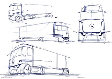 Alguns esboços do eActros LongHaul foram compartilhados pela empresa, revelando o que pode ser esperado em termos de design do caminhão no evento em setembro. Em termos de renderização, o foco ficou por conta da parte da frente do veículo.