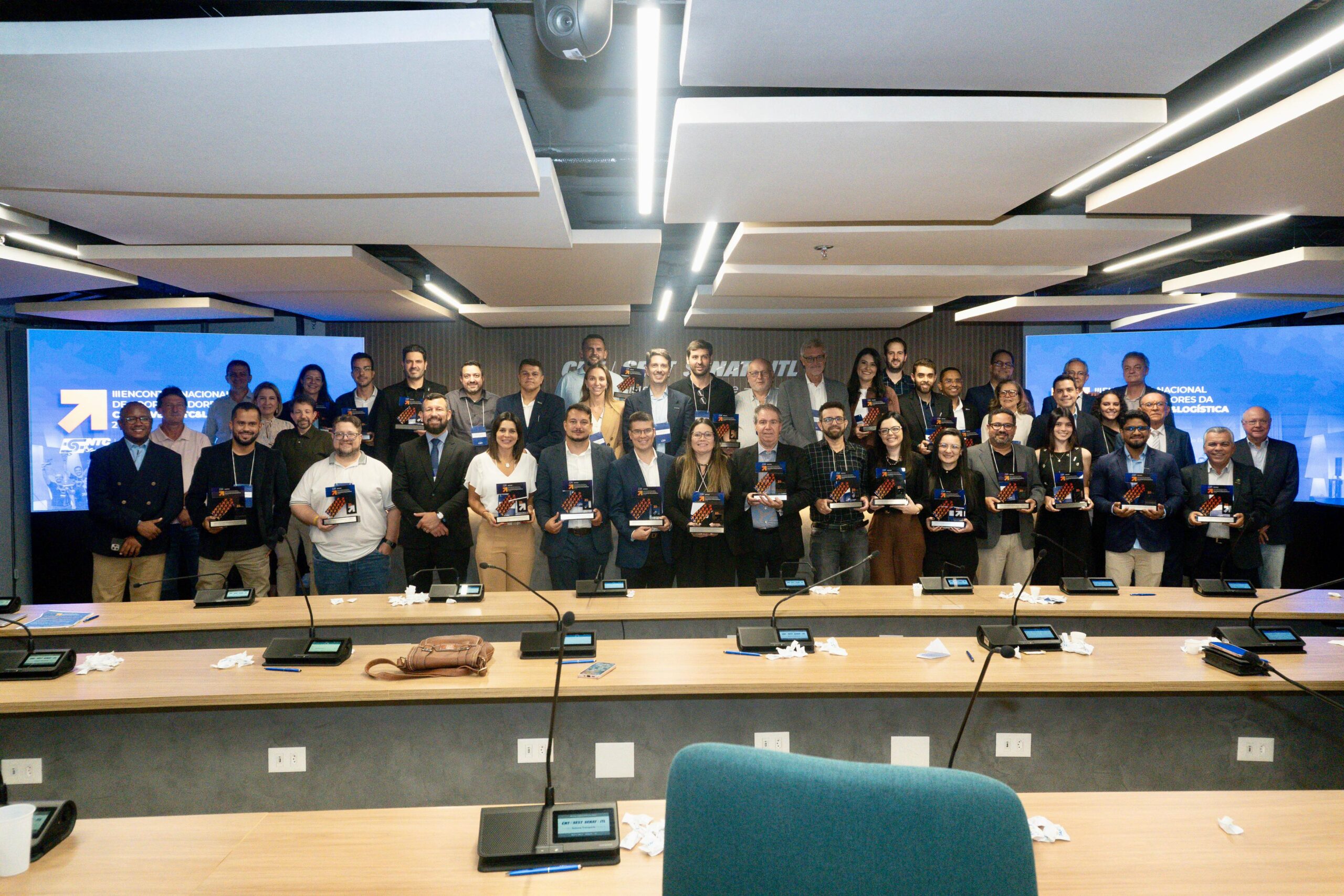 Ao final do encontro, todas as entidades responsáveis por Núcleos da Comissão em suas bases e que estiveram presentes no evento receberam um troféu da NTC&Logística por sua representatividade e participação no evento.