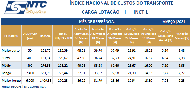 O INCTL mede a evolução de todos os custos da carga completa, incluindo transferência, administração, gerenciamento de riscos e custo valor.