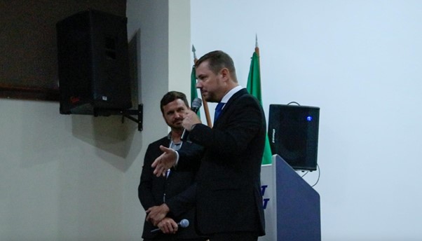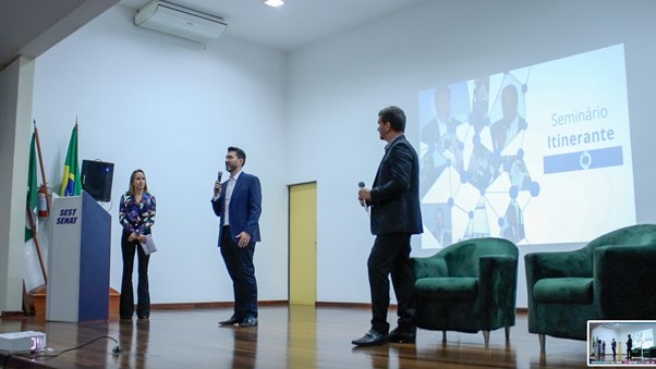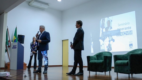 Participaram das apresentações iniciais o coordenador nacional da COMJOVEM, André de Simone, e a vice-coordenadora, Joyce Bessa. André destacou o sucesso de público do Seminário e agradeceu o apoio de todos os patrocinadores. “Muito obrigado por acreditarem no nosso trabalho e na atuação da COMJOVEM em levar o desenvolvimento e o incentivo ao networking para o Brasil. Graças a essa confiança e investimento, hoje, contamos com a presença de representantes da COMJOVEM de toda a região Sul”, começou André. O coordenador do Núcleo de Chapecó, Daniel Vicenzi também comentou em sua fala inicial a importância da realização do evento e como o grupo vem se desenvolvendo ao longo dos últimos três anos de atuação.