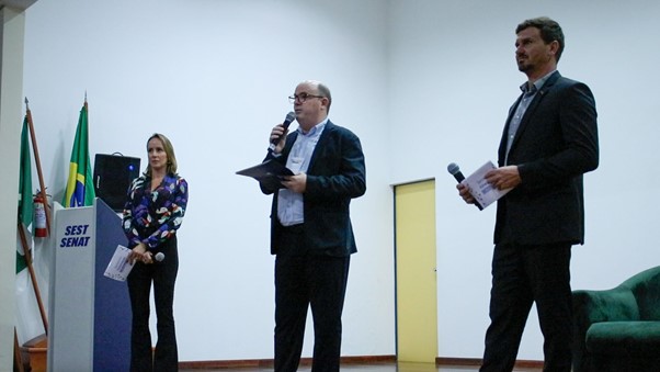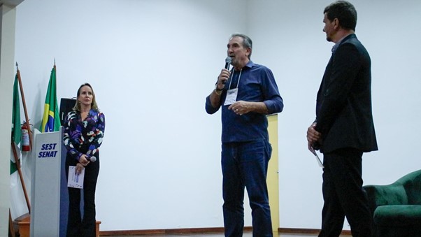 Representando o prefeito, o secretário de desenvolvimento econômico de Chapecó, Elio Cella falou sobre a felicidade de receber o evento na cidade e parabenizou os participantes e as autoridades do setor presentes.