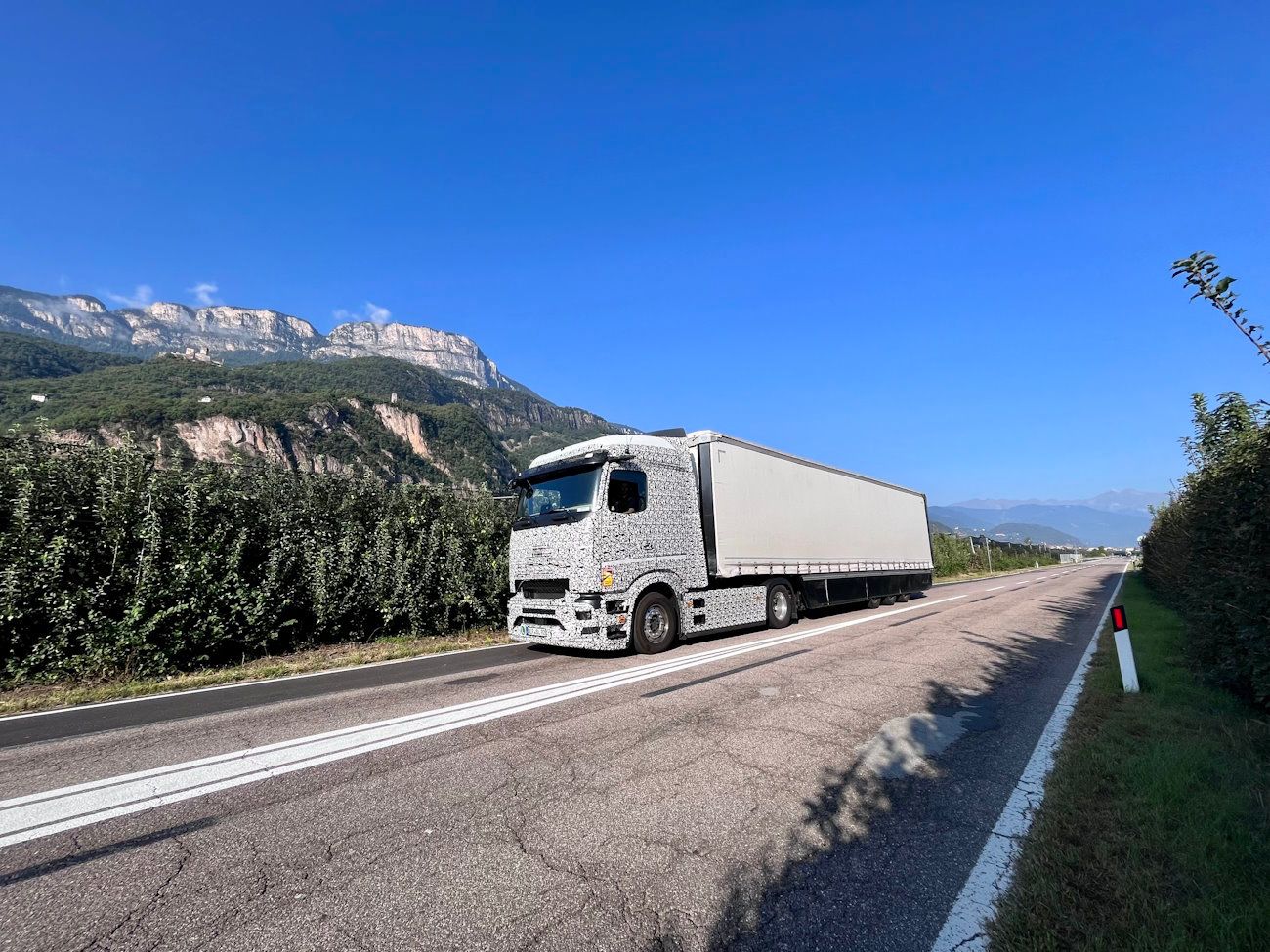O caminhão eActros 600, que será oficialmente revelado hoje (10), registrou um recorde de autonomia de operação na Europa, rodando entre Stuttgart ao Tirol do Sul, sem ser recarregado durante a viagem.