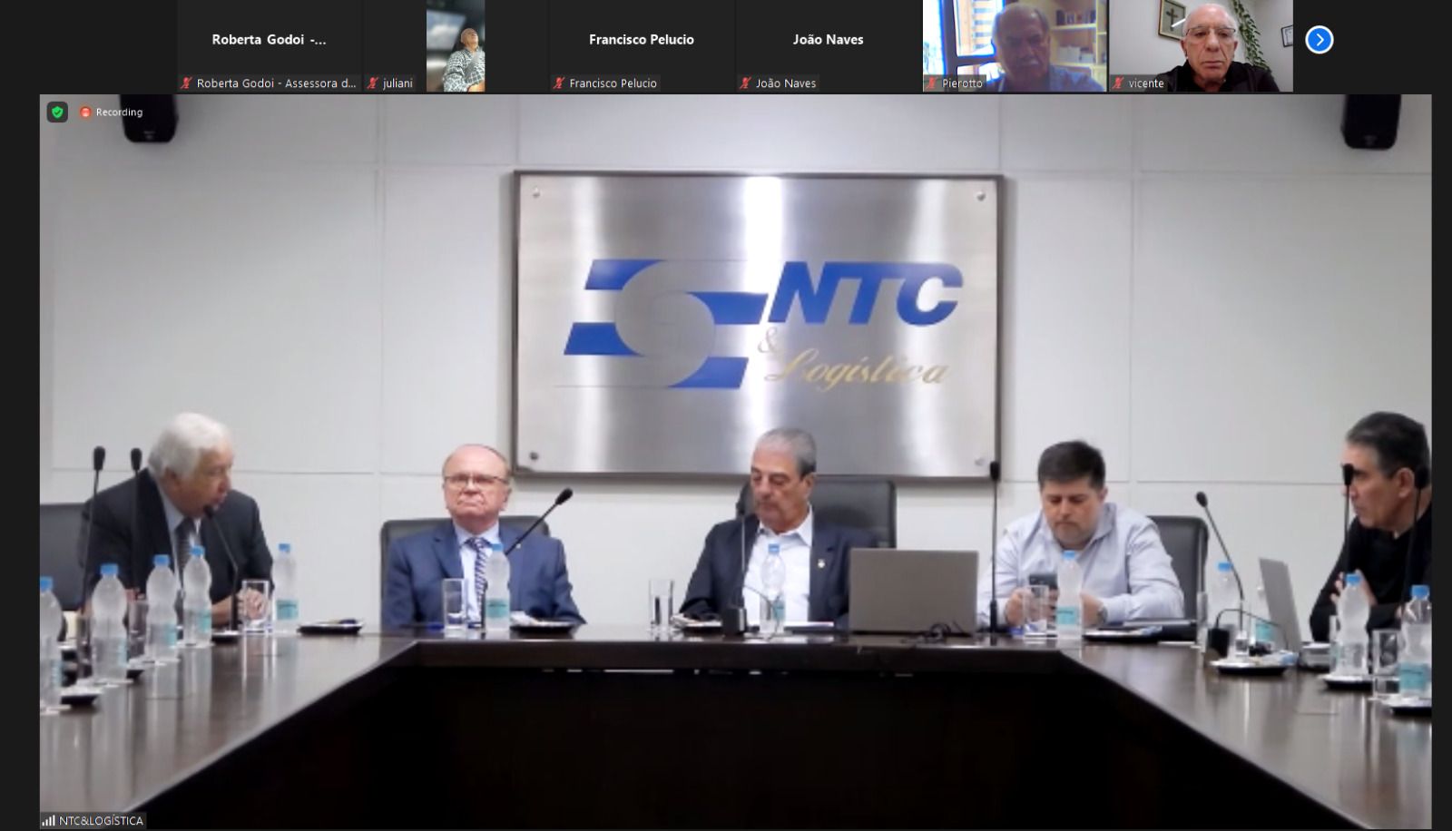 O presidente da NTC, Francisco Pelucio, realizou ontem, quinta-feira (27), mais uma reunião ordinária para debater as principais pautas do setor rodoviário de cargas do mês de abril com os representantes da diretoria da entidade, presidentes de entidades, assessores e empresários convidados.
