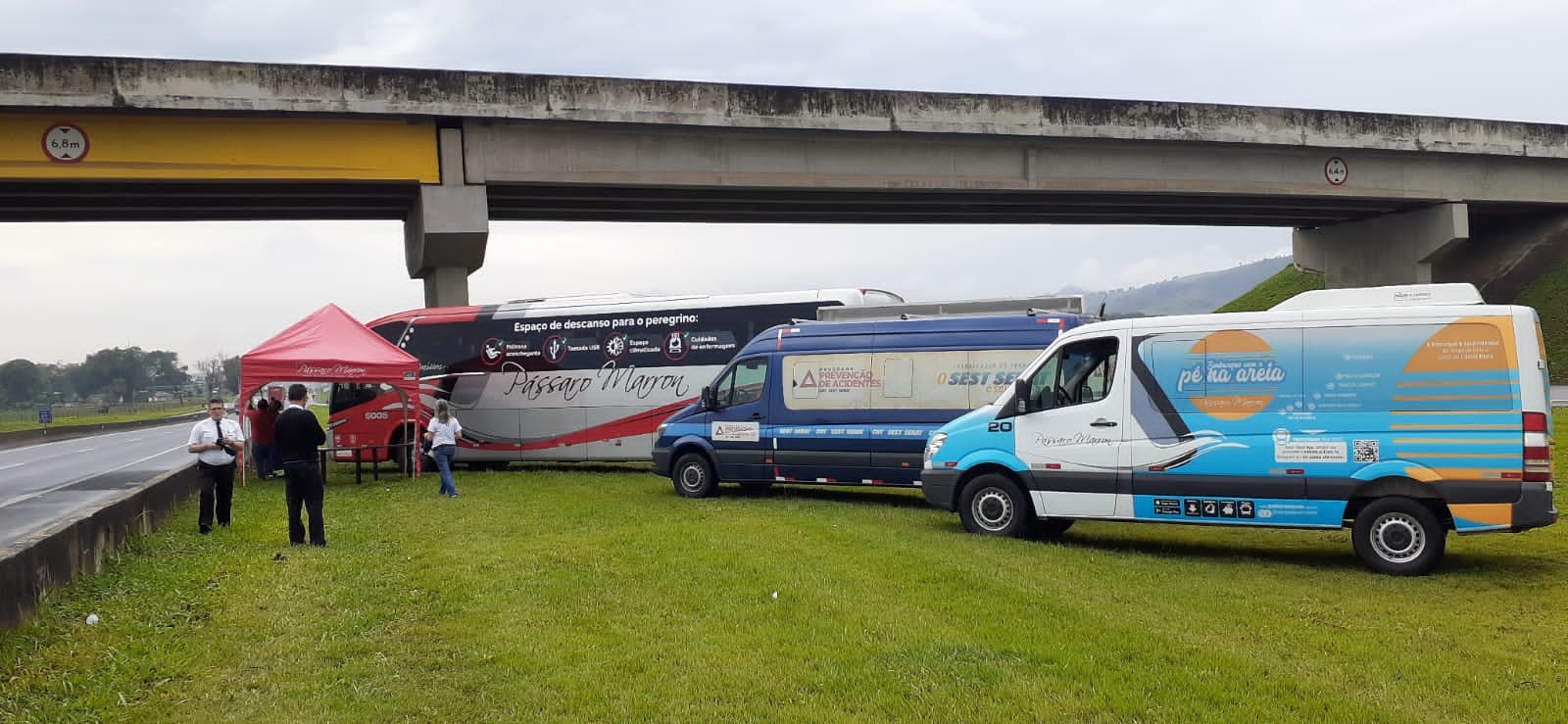 A empresa em parceria com o SEST SENAT e a NTC&Logística montou um ponto de apoio na altura do km 85 da Rodovia Presidente Dutra, no sentido Rio de Janeiro, no município de Roseira, com um ônibus e uma van.