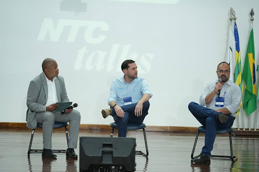 Após o intervalo de networking, os participantes acompanharam o NTC Talks, momento dedicado aos patrocinadores. A atividade foi conduzida por Rodrigo Bernardino, que recebeu no palco Vanderlei de Felicio Junior, gerente comercial da Autotrac, e Rodolpho Neves, sócio proprietário da Intertrac. Eles falaram sobre inovações da empresa, como a integração da tecnologia Starlink, a evolução da SmartCamera NG e o uso de inteligência artificial nas soluções de monitoramento e rastreamento.