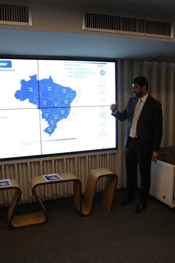 Em seguida, os participantes saíram da sala de eventos para assistir à apresentação do diretor adjunto nacional do SEST SENAT, Vinícius Ladeira. Através de uma pesquisa realizada pela instituição, o diretor explicou aos transportadores como funciona a atuação do SEST SENAT nas diferentes regiões do Brasil e dos seus estados federativos.