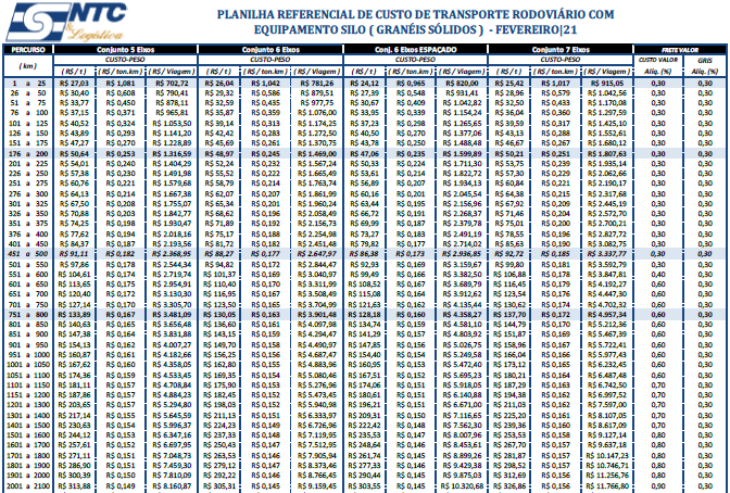 Planilhas Referenciais de Custos NTC – Granéis Sólidos com equipamento Silo – Fevereiro|21