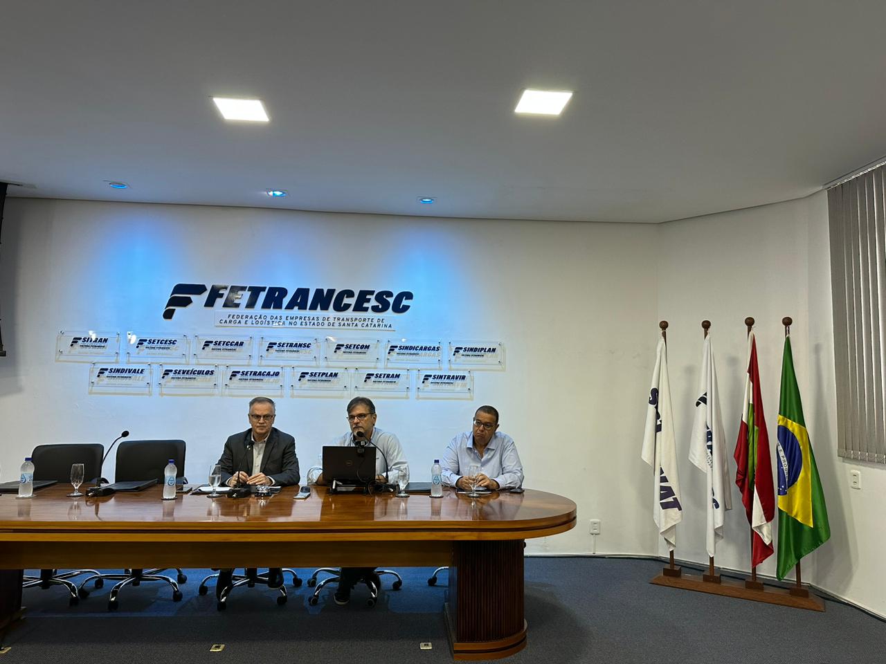 Na ocasião, foram apresentadas informações atualizadas do Departamento Nacional de Infraestrutura de Transportes (DNIT) sobre o andamento das obras e recursos para as Rodovias de SC. Também foram divulgadas informações da Agência Nacional de Transportes Terrestres ANTT sobre os bloqueios na extensão da BR 101, km 01; e da BR-376, entre o km 662 e 671, por meio do especialista em Regulação, Orlei Damazio Silveira.