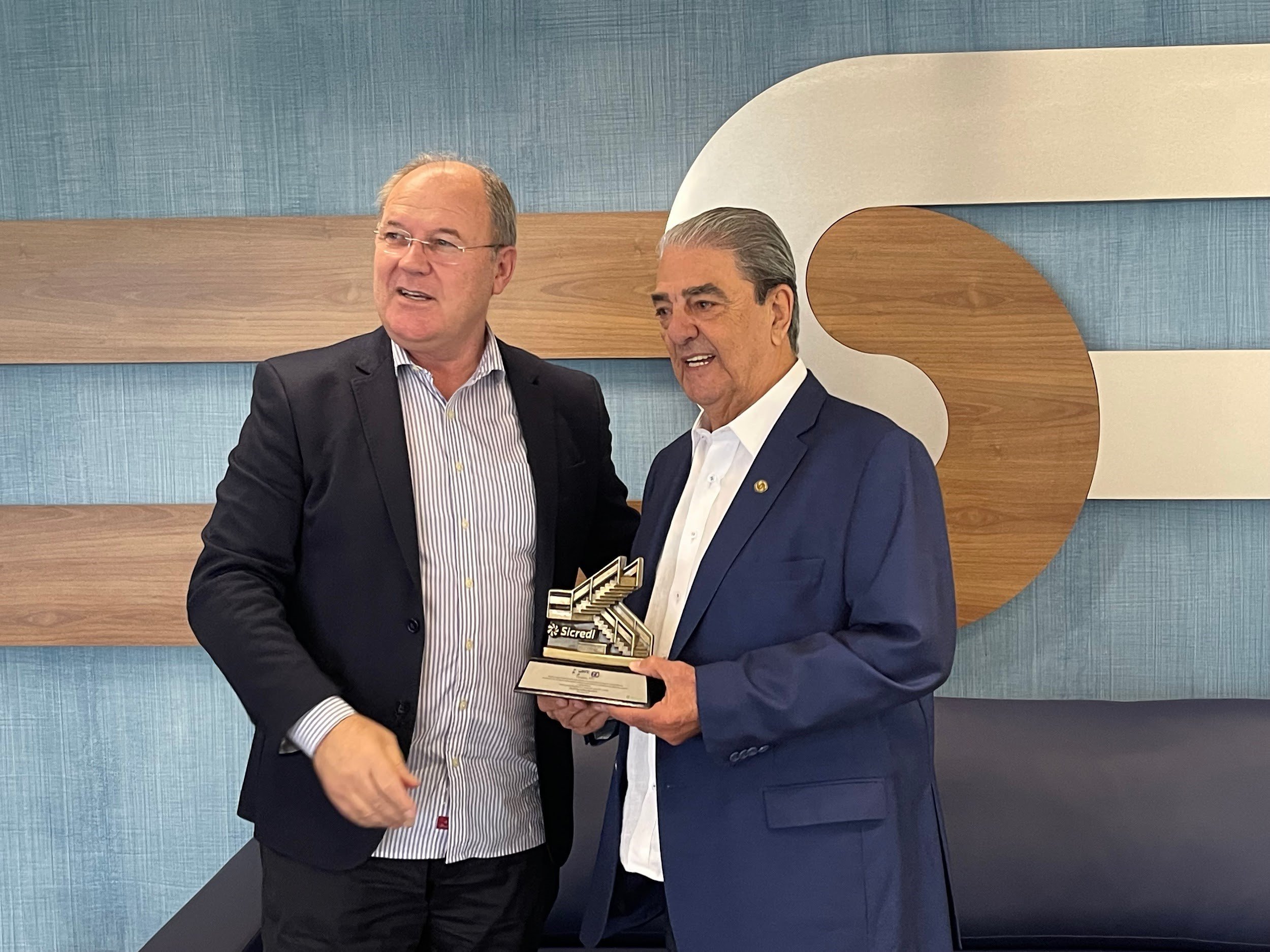 Durante a visita, houve a entrega do troféu que representa a história do Sicredi para o presidente Pelucio, que foi o primeiro presidente da FETCOOP, cooperativa que nasceu da união dos 15 sindicatos que formavam a Federação do Estado de São Paulo. Onde juntos com o Sicredi fundaram um projeto financeiro para atuar com as necessidades dos transportadores, tendo iniciado as atividades em 2011, enquanto Pelucio ocupava a função de presidente do SETCESP, tornando-se Sicredi-Fetcoop.