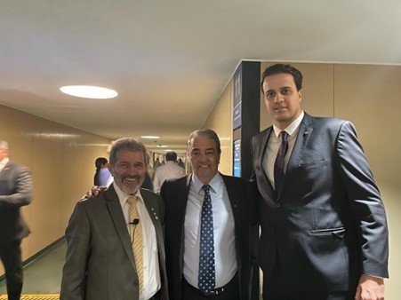 Deputado Gonzaga Patriota, presidente Francisco Pelucio e deputado Lucas Gonzalez