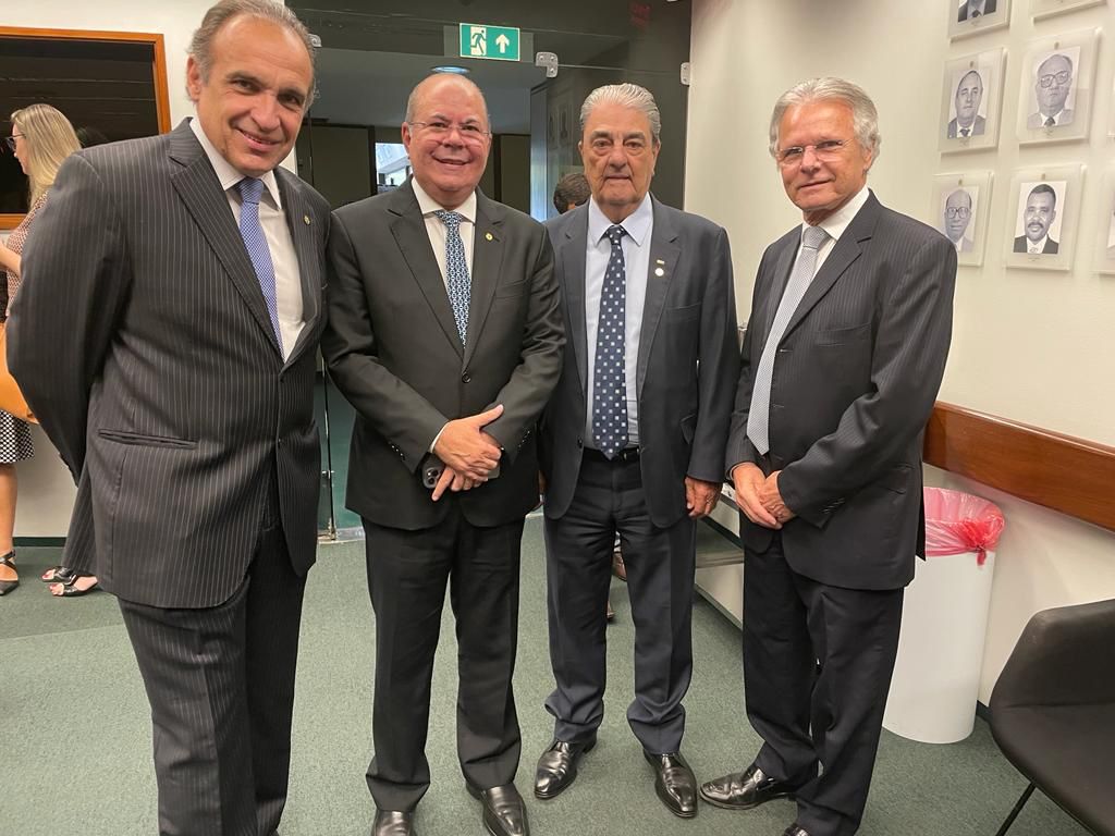 Deputado Hugo Leal, presidente da CVT, Hildo Rocha, presidente da NTC&Logística, Francisco Pelucio e o deputado Vanderlei Macris