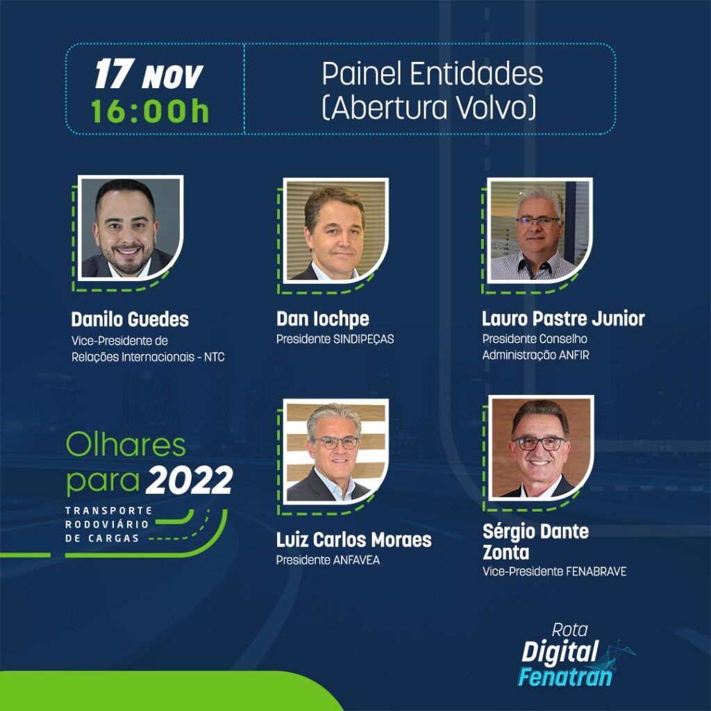 A Rota Digital Fenatran começou ontem (16)  e vai promover na próxima semana, até 18 de novembro, uma série de encontros virtuais com executivos e especialistas do mercado com o tema “Olhares para 2022: Transporte Rodoviário de Carga”. O summit marca também a contagem regressiva de um ano para a 23a edição do evento, que será realizado em novembro de 2022, no São Paulo Expo.