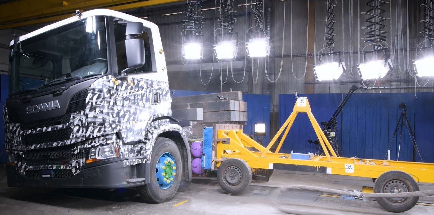 Por isso, são realizados estudos de estatísticas de acidentes e os engenheiros da Scania preparam testes de colisão para melhorar a segurança de cada modelo.