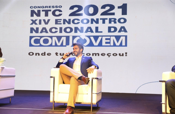 O terceiro dia de atividades do Congresso NTC 2021 – XIV Encontro Nacional da COMJOVEM começou novamente no Plenário do Costão do Santinho, com a palestra de David César, jovem de 32 anos, que nasceu com a síndrome de Hanhart, deficiência genética que acarreta a falta de membros superiores e inferiores, mas isso não o impediu de seguir em frente e, mais do que isso, fazer parte da transformação do mundo onde vive. David é ganhador do prêmio Brasil + Inclusão, a mais importante premiação brasileira relacionada à acessibilidade e inclusão social e em sua palestra, trouxe para os participantes do evento, com muito bom humor e vivacidade, seus desafios de vida e provou que os sonhos são exatamente do tamanho da nossa força de vontade.