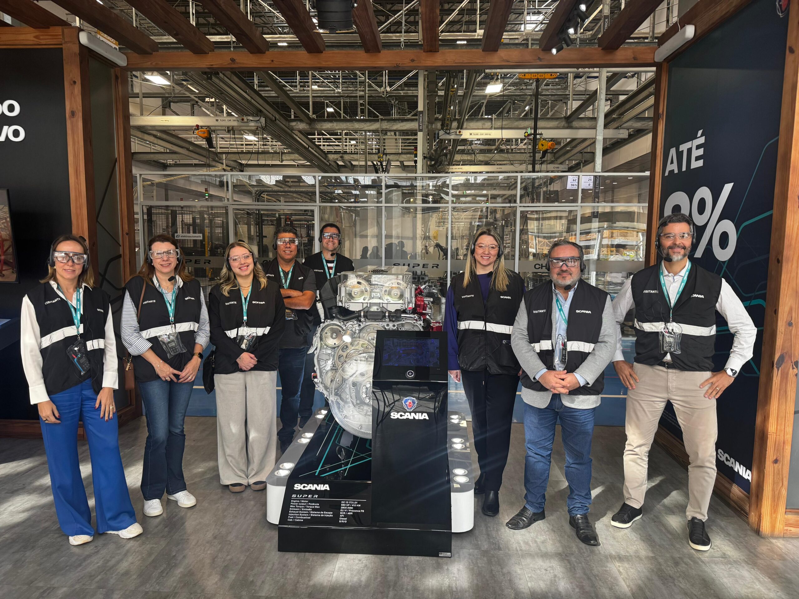 A NTC&Logística foi representada pela vice-presidente extraordinária da Pauta ESG, Joyce Bessa, na visita técnica à fábrica da Scania, em São Bernardo do Campo (SP). A ação foi promovida pelo Grupo de Trabalho de Transição Energética da Confederação Nacional do Transporte (CNT) e reuniu lideranças do setor para debater soluções sustentáveis e o futuro do Transporte Rodoviário de Cargas.